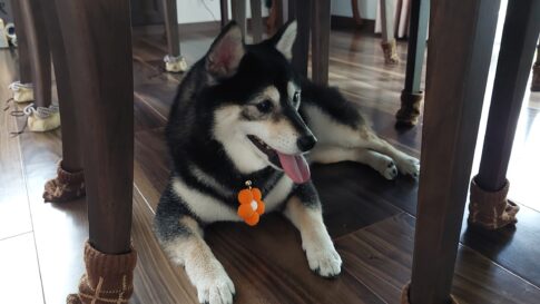 豆柴 ももシャンプーから帰って来たもも。 シャンプーという大仕事を終え、やり切った感たっぷりな様子で休憩中。 シャンプーのあとは、ご褒美に、かわいい首飾りをつけてくれます。 「もも、きょうは何をつけてもらったの? 見せてよ」 もも...