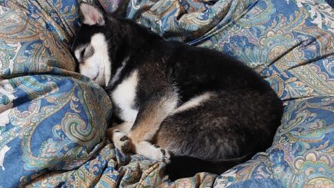 豆柴 もも豆柴のももは、ももパパのお布団で寝るのが大好き。 布団が畳まれていたってなんのその。 ジャンプ! 羽毛布団の上をゴソゴソ…ゴソゴソ…。 上手に寝場所を作ります。 でもちょっと窮屈かな? 「分かったよ、お布団敷いてあげます...