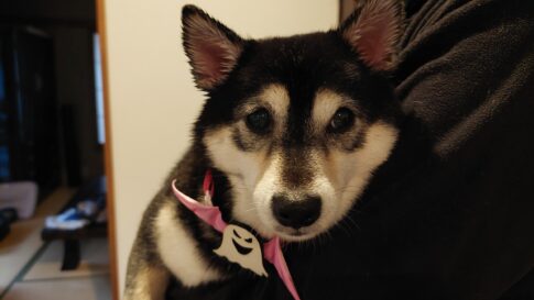 豆柴 もも美容院でハロウィーンの首飾りをしてもらったももは、なにやらとてもご機嫌です。 気に入ったのね。 毛づくろいをしながら、お花のペンダントが揺れるのを、楽しんでいるみたい。 もも、とっても似合っているよ。 おすまし顔のももち...