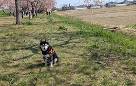 ももと一緒に、桜並木が続く川辺にやってきました。 満開の桜。ピンクの花びらが一面に広がっています。 地面には黄色のスイセンも咲いていて、いろいろな色が溢れて、とってもキレイです。 ももも最初は、足元のスイセンを目にしては...