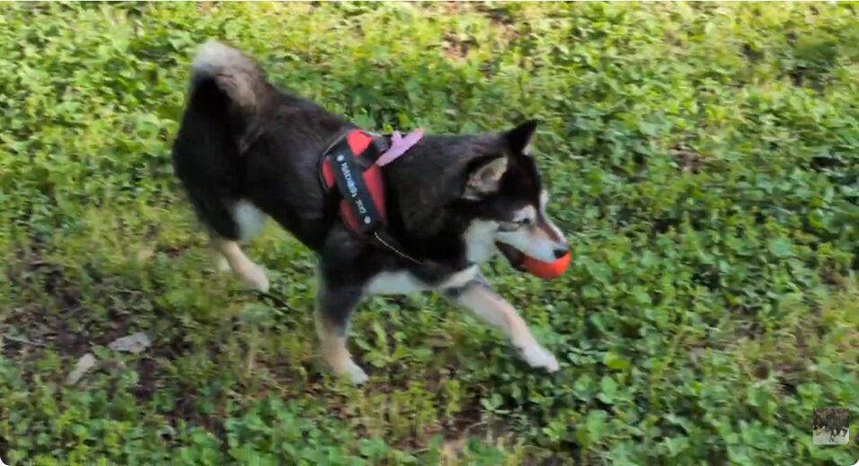 新しいボールの威力が功を奏して、ももはボール遊びを一緒にやってくれました!